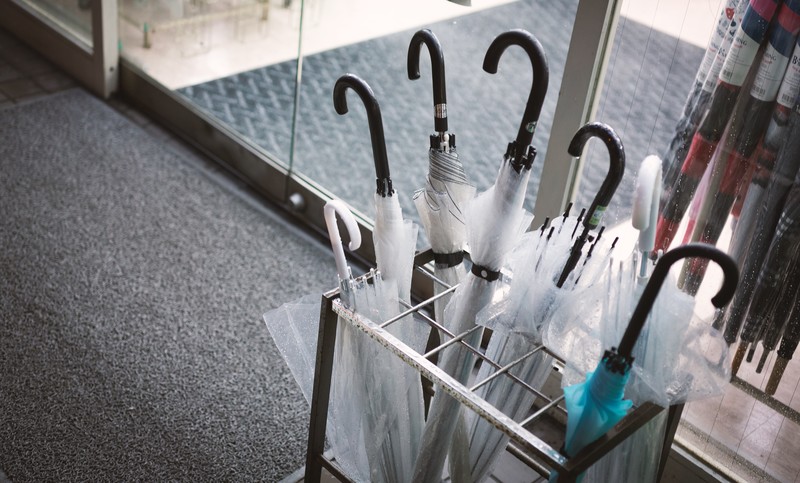 お課外から室内に入る際、濡れた傘をくるくると左右に振って水を切っている方はいませんか?